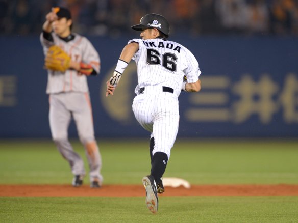 投手 内海 1番 岡田 二ゴ 初球、内角寄りのストレートを引っ掛けた打球は、セカンドにさばかれてしまった。 |