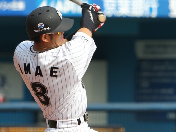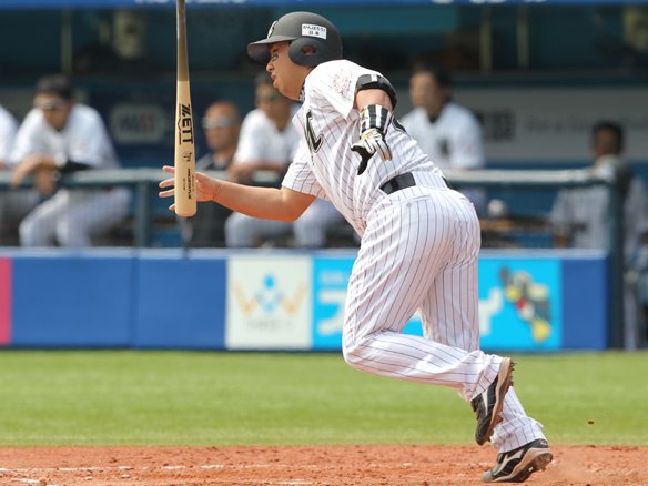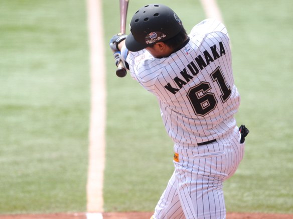 好投手に対しても臆することなくバットを振り抜く5番・角中がクリーンヒットを放ちました。なんとか連打を浴びせて先制点を奪い、成瀬を援護しましょう! |
