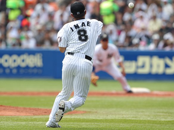 投手 成瀬 5番 阿部 二ゴ 1-2から外角寄り高めのストレートを引っ張られたゴロは、セカンドが逆シングルで拾い上げ、1塁へさばいた。 |