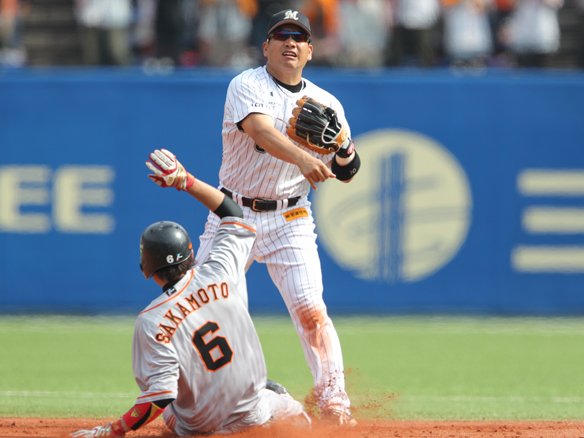 根元と井口が鮮やかなダブルプレーを完成させた!