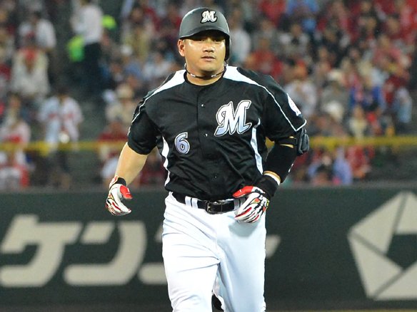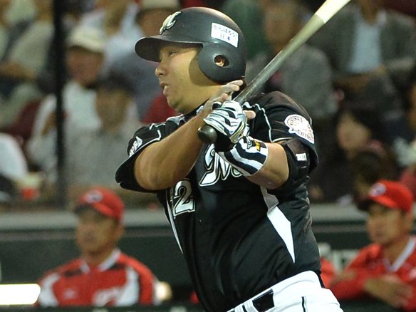 5番 角中 中安 2-2から真ん中高めのカーブをうまく引きつけはじき返し、痛烈なライナーとなった打球はセンター前へ! このヒットで角中は22試合連続出塁となった! |