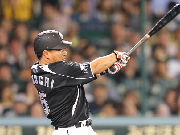 井口の猛打賞となる一打でさらに1点を追加! リードを3点に広げ、勝利を大きく引き寄せています! |