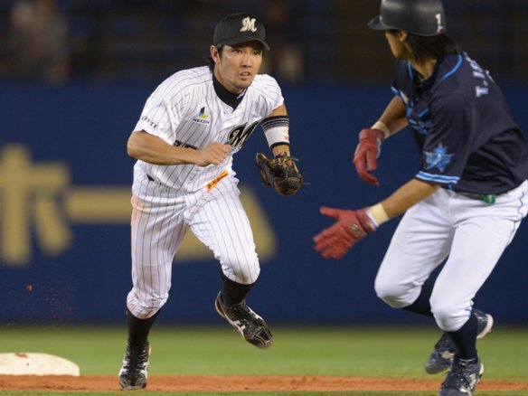【千葉ロッテ選手交代】 1塁ランナー・大松→代走・塀内 |