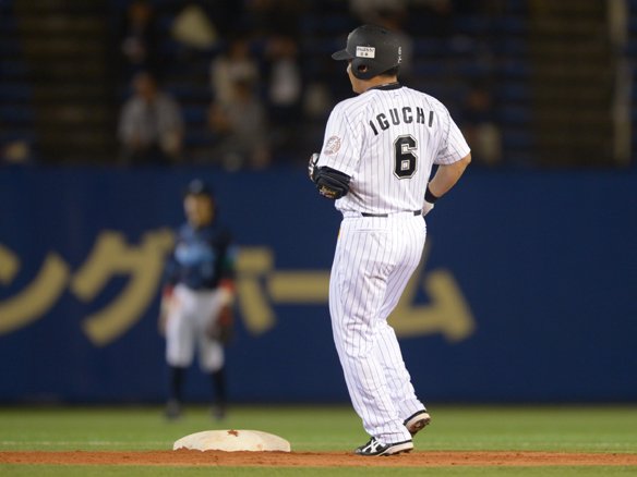 痛烈な当たりを放った井口は悠々と2塁へ!!