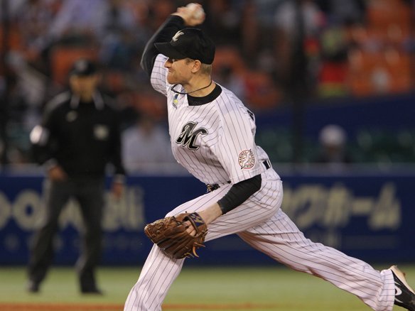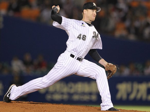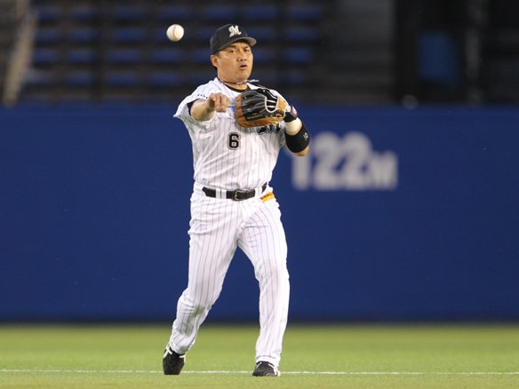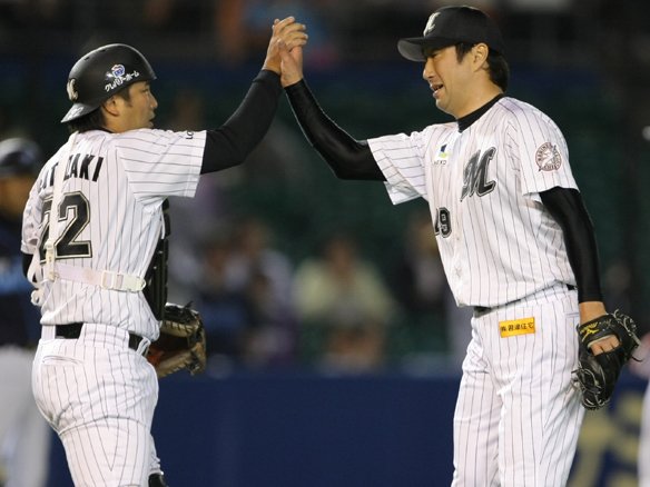 8番 里崎 見三振 2-2から内角高めへのチェンジアップを見送るが、判定はストライクとなった。 |