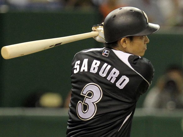 4番・サブローが今日2本目となるヒットを放ち出塁。古巣相手にバットで健在をアピールしました! |