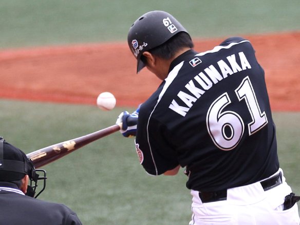 投手 釜田 4番 サブロー 四球 フルカウントから内角高めに外れるストレートを見送った。 |