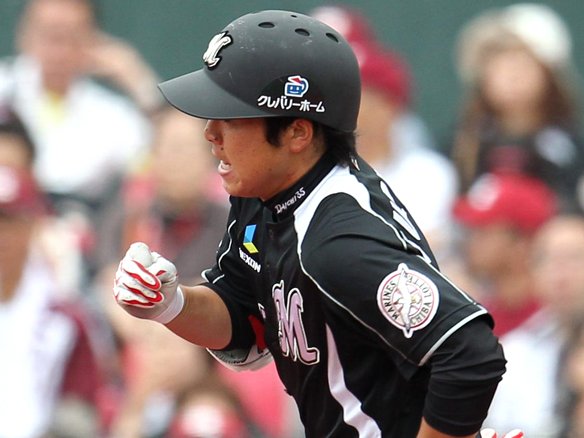 鈴木がプロ入り初となる猛打賞でチャンスメーク。勝ち越しのチャンスで代打・福浦も巧みな打撃を見せますが、打球は惜しくも相手守備に阻まれました。同点のまま9回の攻撃に入るためにも、堅守を発揮したい! |