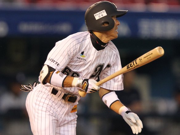 4番 サブロー 一ゴ 2-2から外角のストレートを流し打った打球は平凡なゴロとなり、ファーストが捕球。自らベースを踏んだ。 |