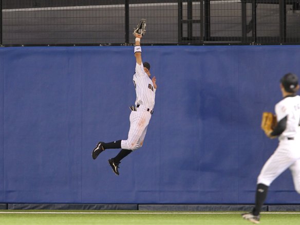 3番 オーティズ 中飛 2-0から外角のスライダーをはじき返される。大きい当たりとなった打球はフェンスを直撃するかと思われたが、追い掛けるセンター・岡田がフェンス手前でジャンピングキャッチ! バックが好守で唐川をもり立てる! |