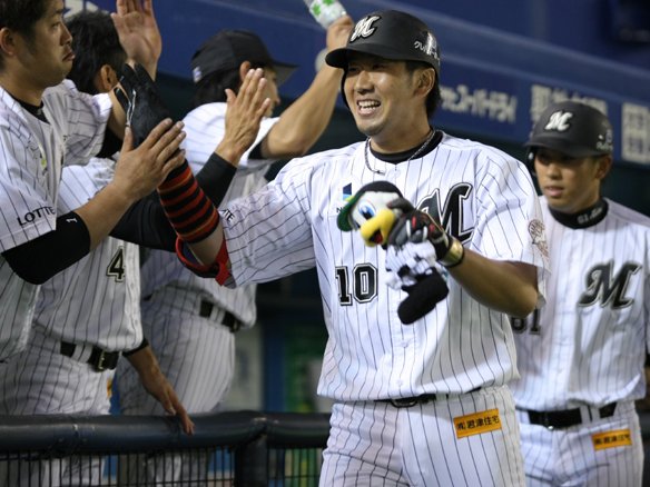 9回もマウンドに上がった唐川は星秀に一発を浴びましたが、後続を抑えて試合終了! 今季3度目の完投勝利で7勝目を挙げ、チームの交流戦後初の勝利へと導きました! |