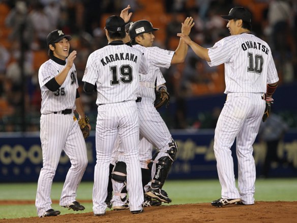 2アウトから里崎が2ベースヒットを放ち、先制のチャンスを迎えましたがあと一本が出ず得点には至りませんでした。粘り強く野上を攻め続け、先制の機会をうかがっていきましょう! |