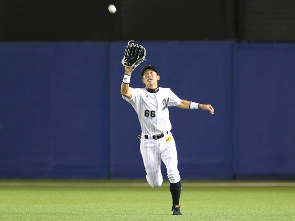 投手 川井 5番 角中 中安 2-2からの緩いカーブにうまく対応してコンパクトに打ち返すと、上がった打球がセンターの前で弾んだ! 角中はこれで6試合連続ヒットを記録! |
