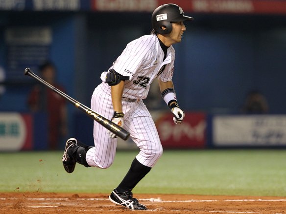 投手 川井 5番 角中 遊ゴ 0-1から外角低めのスライダーを流し打ちした三遊間へのゴロは、回り込むショートに拾われて素早く1塁へ送球される。角中が懸命に1塁へ走るが、惜しくも間に合わず。 |