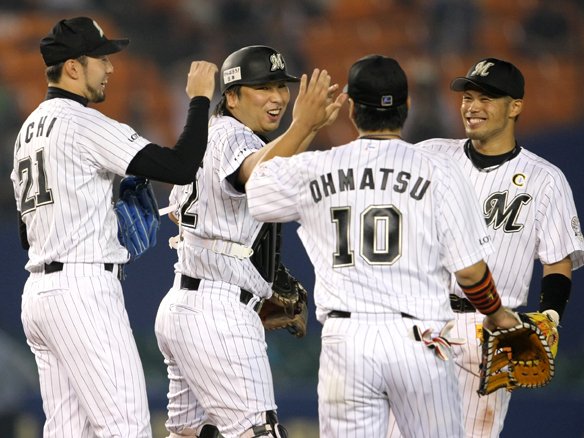 昨日、自身通算100号ホームランを放った里崎のヒットなどでチャンスを作りますが、細かい継投に出た相手を攻略できず追加点には至りません。試合は後半へ。ここまで快投を続ける唐川を援護するべく、打線が奮起しましょう! |