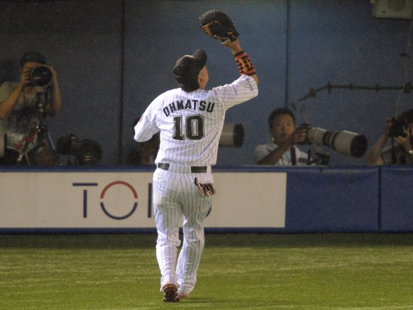 4番 李大浩 左翼二 初球、外角低めのカットボールを引っ張られた痛烈な打球をレフトが追うも届かず、そのままフェンスまで到達する。打球を処理する間に2塁ランナーがゆっくり生還し1対7。バッターランナーは2塁でストップ。 ![]() 1