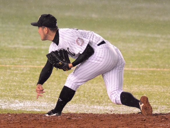 6番 バルディリス 死球 2-1から内角高めに投じたシュートがバッターの左手付近に直撃してしまった。 |