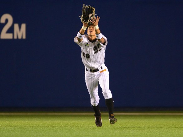 6番 バルディリス 中飛 フルカウントから高めのストレートを打たれたが、右中間深いところへ飛んだ打球にセンター・岡田が快足を飛ばして追いつき、最後は余裕をもってキャッチした。 |