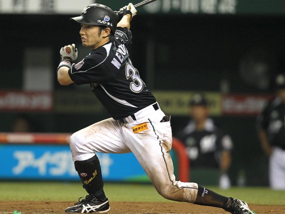 投手 グライシンガー 3番 中島 右安 0-2から外角高めに外れるカットボールを右方向に打ち返された打球は、飛び付いたセカンドの横を抜けて、ライト前に転がってしまった。 |