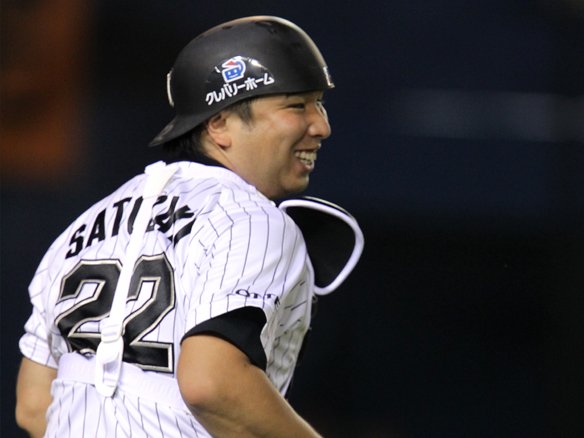 3番 サブロー 左安 1-2から内角低めのシュートを、コンパクトなスイングですくい上げた打球は、レフトの前に弾んだ! |