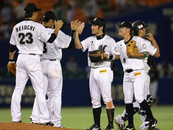 5番・角中が長打でチャンスを作り、6番・井口、9番・今江と、打順を入れ替えたポイントゲッターが、1巡目から機能しました! 成瀬に2点をプレゼントです! |