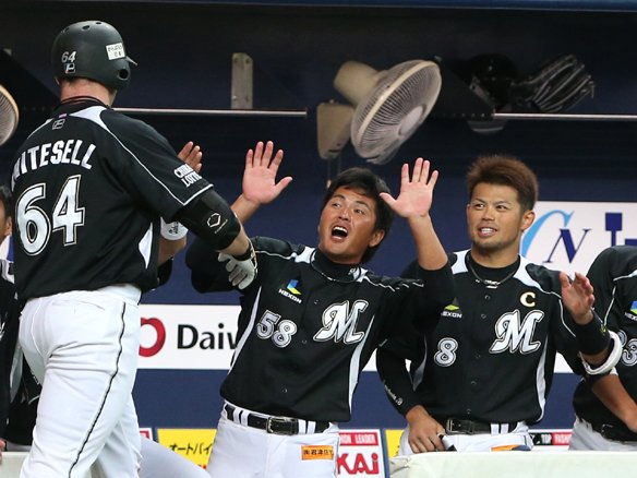 【千葉ロッテ選手交代】 1塁ランナー・ホワイトセル→代走・塀内 |