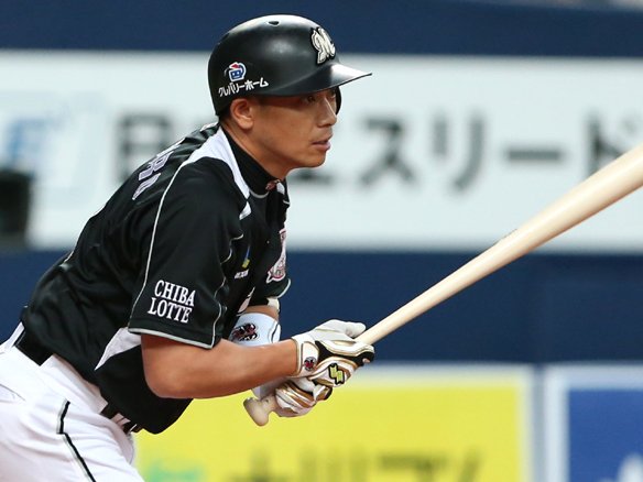 3番 井口 左安 1-2から内角寄りのストレートに差し込まれながらも振り抜くと、フワリと上がる打球がショートの後方で弾んだ! 井口はこれで10試合連続出塁を記録! |
