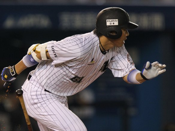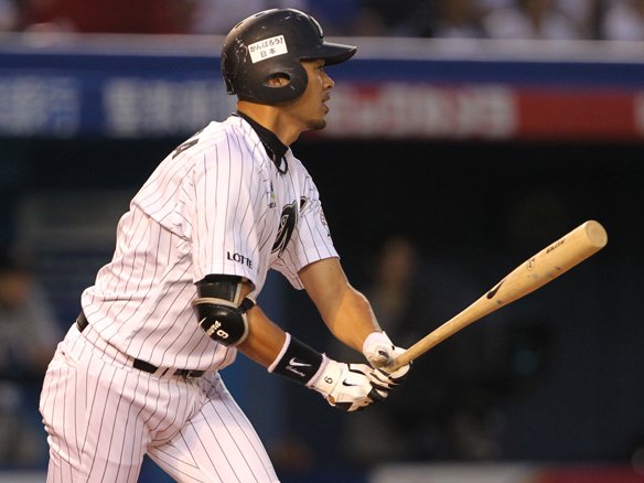 4番 李大浩 中安 1-0から外角低めのストレートに食らいつかれた打球は低いゴロとなり、セカンドがグラブに当てるも捕球できず、センター前に抜けてしまった。 |