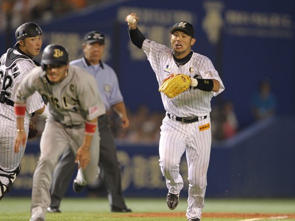 【オリックス選手交代】 1塁ランナー・李大浩→代走・中村 |