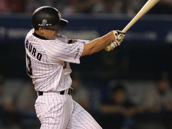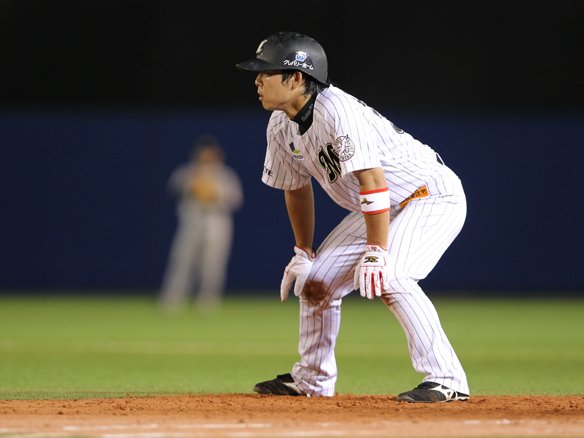 1番 荻野貴 左安 初球、外角への緩いカーブを引っ張り、打球はきれいに三遊間を破った! |