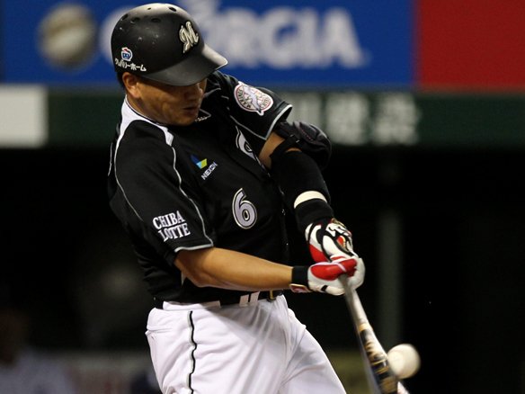 8番 里崎 右飛 0-1からやや内角寄りのストレートに差し込まれ、力の無いフライとなった打球はライトにおさえられた。 |