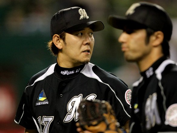 投手 野上 8番 里崎 遊ゴ フルカウントから外角のストレートを引っ掛けてしまい、ボテボテのゴロとなった打球はショートにさばかれた。 |