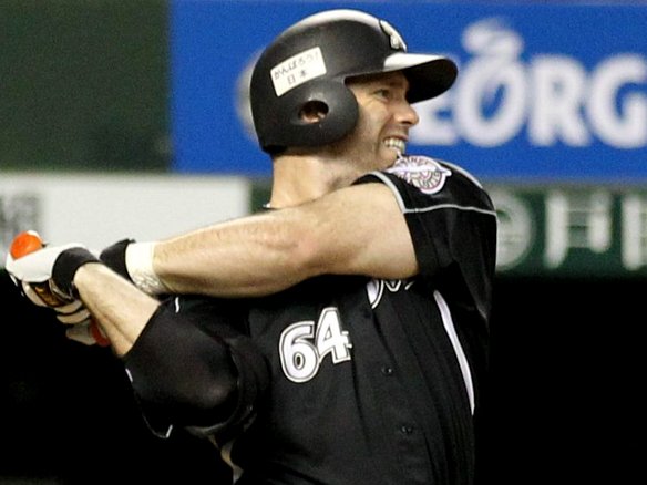 6番 サブロー 空三振 2-2から内角高めのストレートにバットが回ってしまった。 |