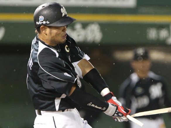 5番 角中 中安 1-2から外角寄り高めのスライダーを鋭くピッチャー返しした打球は、ピッチャーの横を破ってセンター前に抜けていった。角中は8月25日以来となる複数安打を記録! |