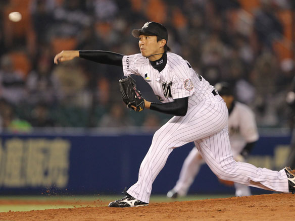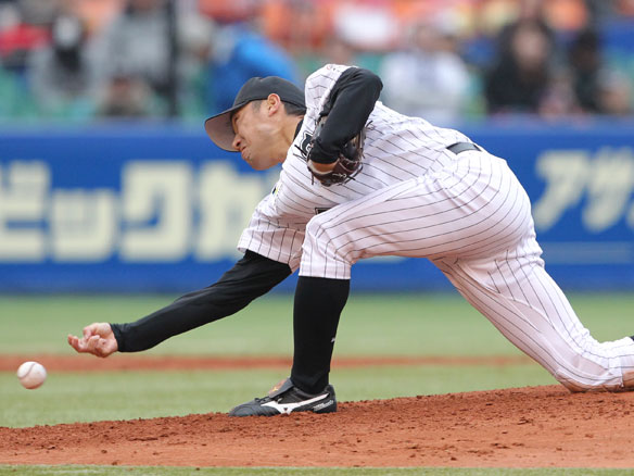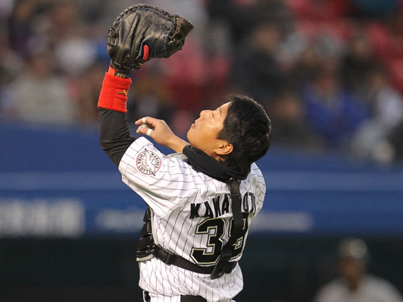 投手 荻野忠 4番 李大浩 遊ゴ 外角のストレートを打つもショートゴロ 3アウトチェンジ |