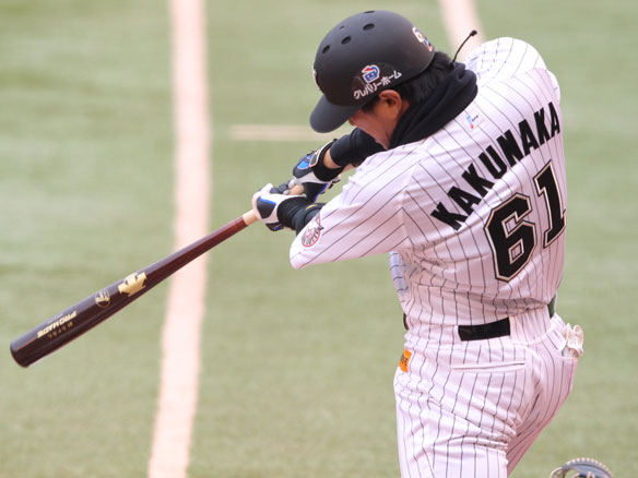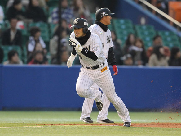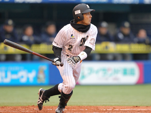 6番 サブロー 左安 レフトへのヒットを放つ 1,2塁 |