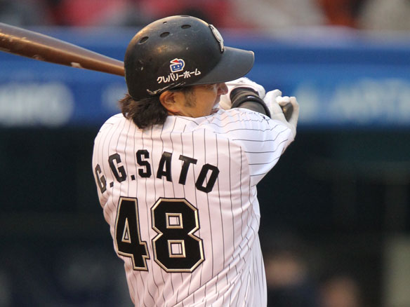 G.G.佐藤が移籍後初打席初安打を左前へ運ぶ!
