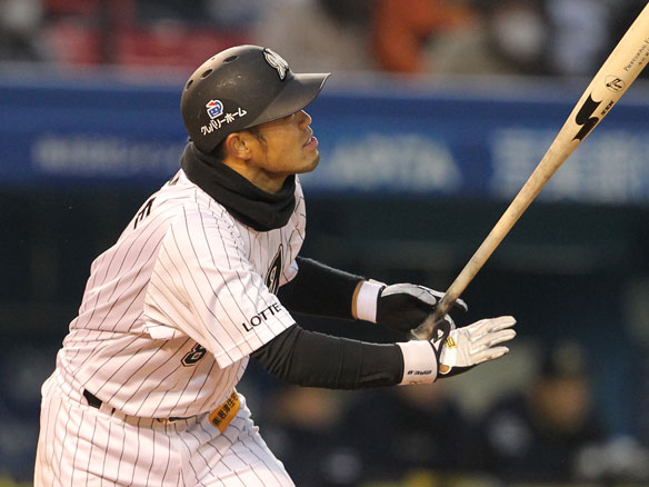 4番 李大浩 右安 ライトへのヒットで出塁 1,3塁 |
