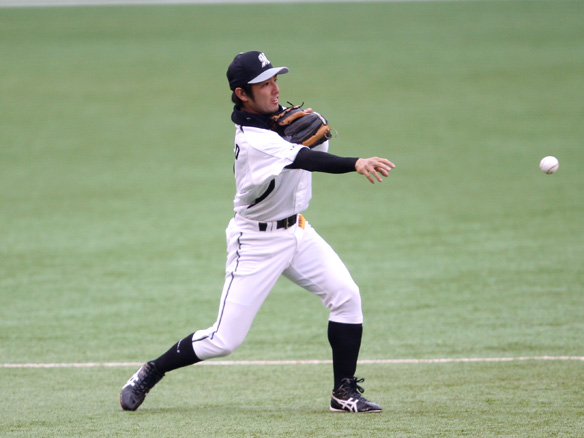 この回から守備に入った鈴木は後藤の打球を軽快にさばく!