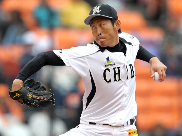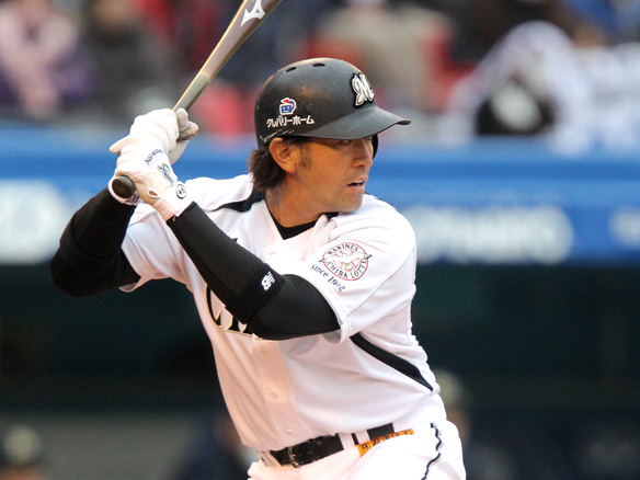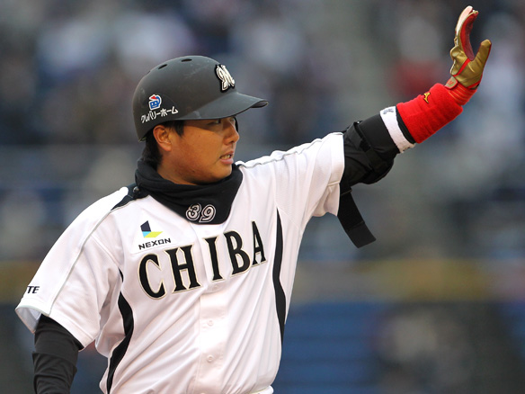 4番 李大浩 四球 低めのストレートを見送りフォアボール。ロッテ、満塁のピンチをまねく 満塁 |