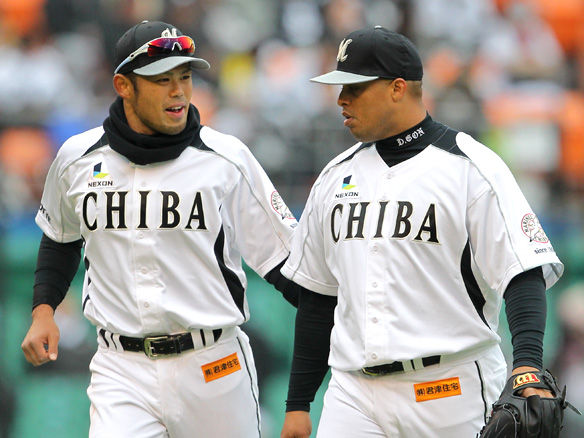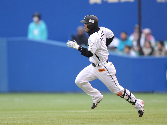 7番 バルディリス 中安 2アウト2塁の1-2からセンターへのタイムリーヒット ロ0-4オ 1塁 ![]() 0
