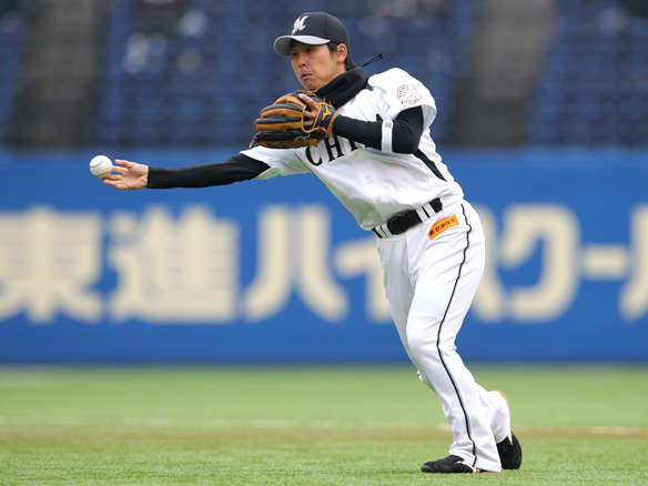 福浦はボールを捉えるも三ゴロに倒れる