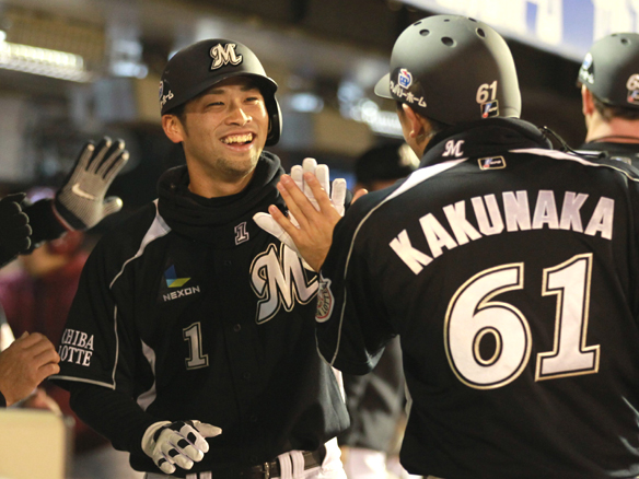 4番 ジョーンズ 左安 ランナー2塁の2-1からレフトへのタイムリーヒット 楽10-2ロ 1塁 ![]() 10