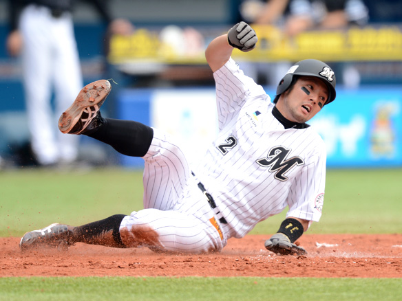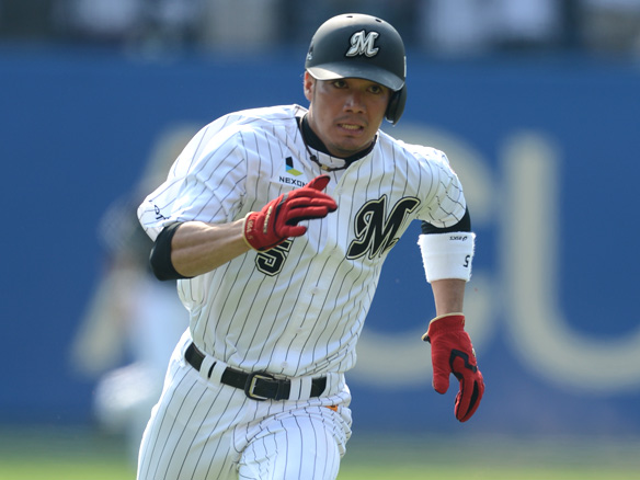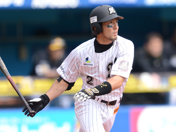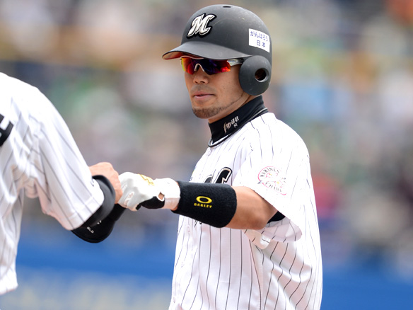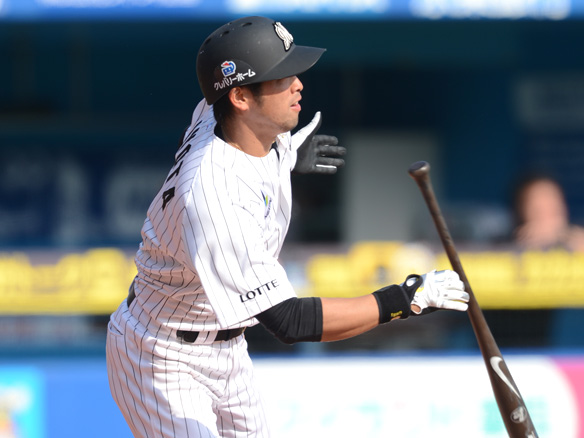 3番 井口 左翼二 カウント1-0からレフトへのタイムリーツーベースでロッテ同点 ロ1-1ソ 2塁 ![]() 1