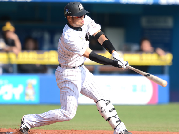 3番 井口 左安 レフトへのヒットを放つ 1,3塁 |