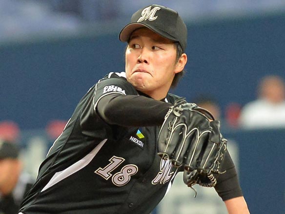 2番 角中 四球 一度もバットを振ることなくストレートのフォアボールを選ぶ 1,2塁 |