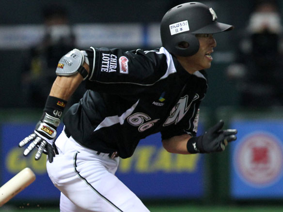 2番 角中 右中二 フェンス直撃の二塁打を放つ 2塁 |