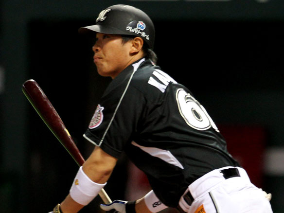 投手 金無英 3番 井口 空三振 空振り三振でバッターアウト 1アウト |