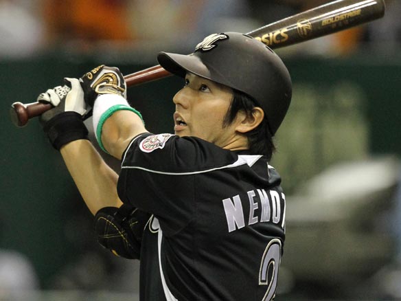 根元は逆転の一発をマリーンズファンの待つ左翼席へ放つ!