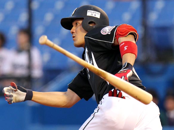 3番 ミレッジ 中安 センターへのヒットで出塁 1塁 |